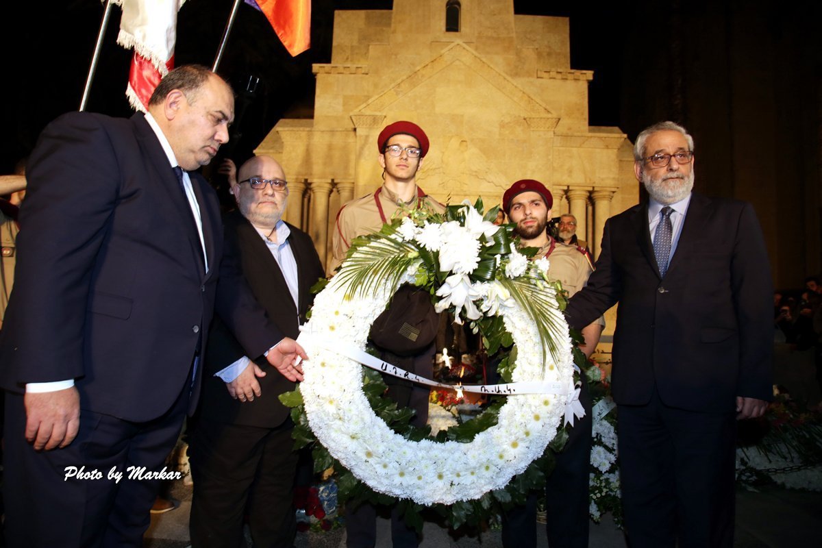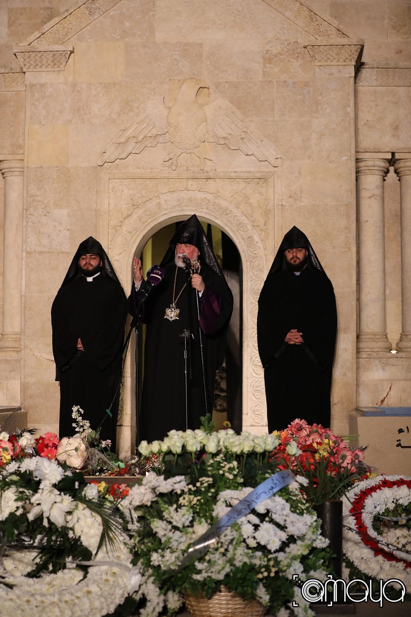 Ձեռնարկը սկսաւ երեկոյեան ժամը 8:30-ին` Լիբանանի եւ Հայաստանի քայլերգներով, ապա` Եղեռնի նահատակաց մատրան յիշատակի ծաղկեպսակներ զետեղեցին Լիբանանի մէջ Հայաստանի դեսպան Վահագն Աթաբէկեան, Լիբանանի մէջ Սուրիոյ դեսպան Ալի Ապտել Քերիմ Ալիի անունով հիւպատոս Ժամալ Նաժիպ, Փաղանգաւոր կուսակցութեան երեսփոխան Նետիմ Ժեմայէլ եւ հայ քաղաքական կուսակցութիւններու ներկայացուցիչները: