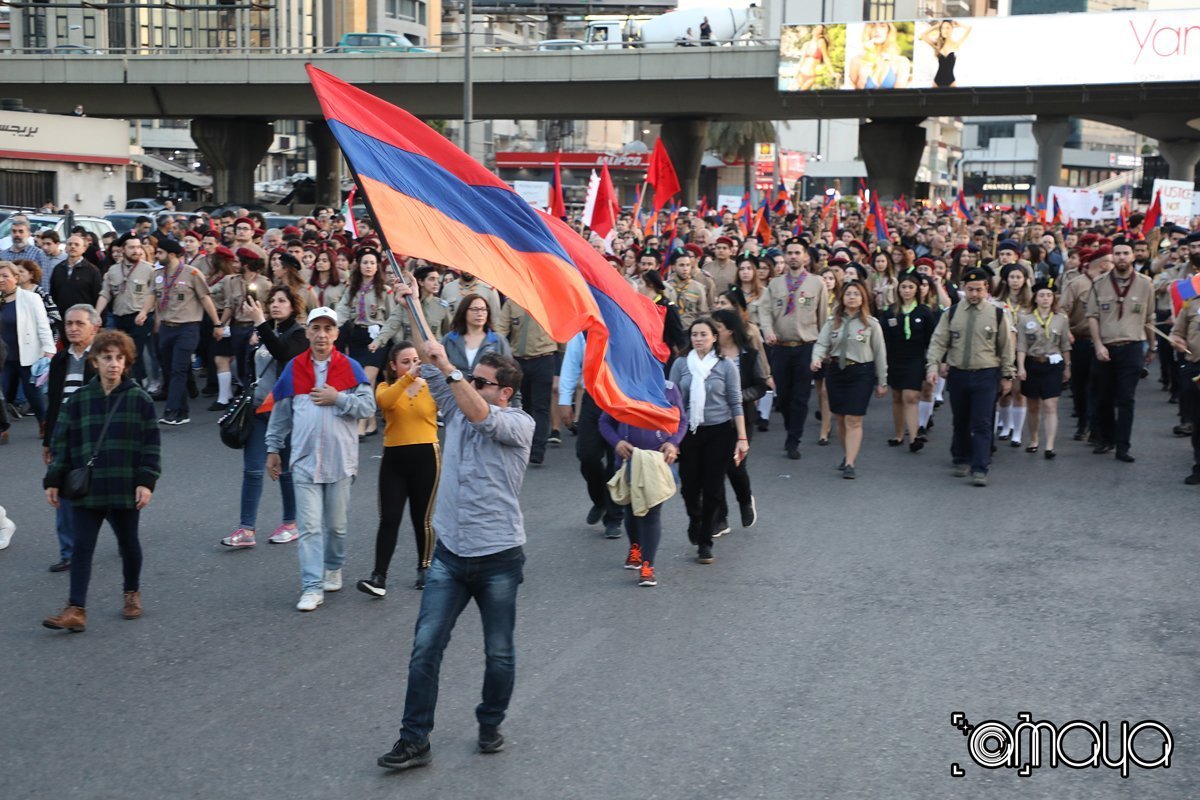 Բազմամարդ ու կարգապահ քայլարշաւով 24 ապրիլին լիբանանահայութիւնը լուրջ պատգամներ յղեց հեռուին ու մօտին` բարձրաձայն գոչելով, թէ ինք կը մնայ հզօր ու կազմակերպ, գիտակից` ազգային իր ինքնութեան, արժէքներուն եւ պարտաւորութեան: Լիբանանահայութիւնը յայտարարեց, թէ գիտէ տարեցով ու երիտասարդով, մանուկով ու պատանիով ոտքի կանգնիլ պէտք եղած պահուն ու իր ձայնը լսելի դարձնել համայն աշխարհին, գիտէ տէր կանգնիլ իր արդար իրաւունքներուն եւ անկաշկանդ ու համարձակ քայլերով դիմակայել ամէն տեսակի խոչընդոտները, որոնք կու գան ցցուելու իր ազգային կեանքին դիմաց: 24 ապրիլին լիբանանահայութիւնը քայլարշաւով վերահաստատեց, որ տէրն է իր արժանապատուութեան եւ արտայայտեց արդարութիւնը ամէն գնով իրականացնելու իր տենչը: