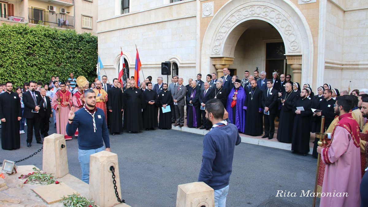 Պատարագի աւարտին, ՀԿՄ-ի շեփորախումբին առաջնորդութեամբ, հանդիսաւոր թափօրով ներկաները ուղղուեցան դէպի հայ կաթողիկէ պատրիարքարանի շրջափակ, ուր Հայոց ցեղասպանութեան նուիրուած յուշակոթողին շուրջ տեղի ունեցաւ ծաղկեպսակներու զետեղում եւ նահատակներուն նուիրուած աղօթք: