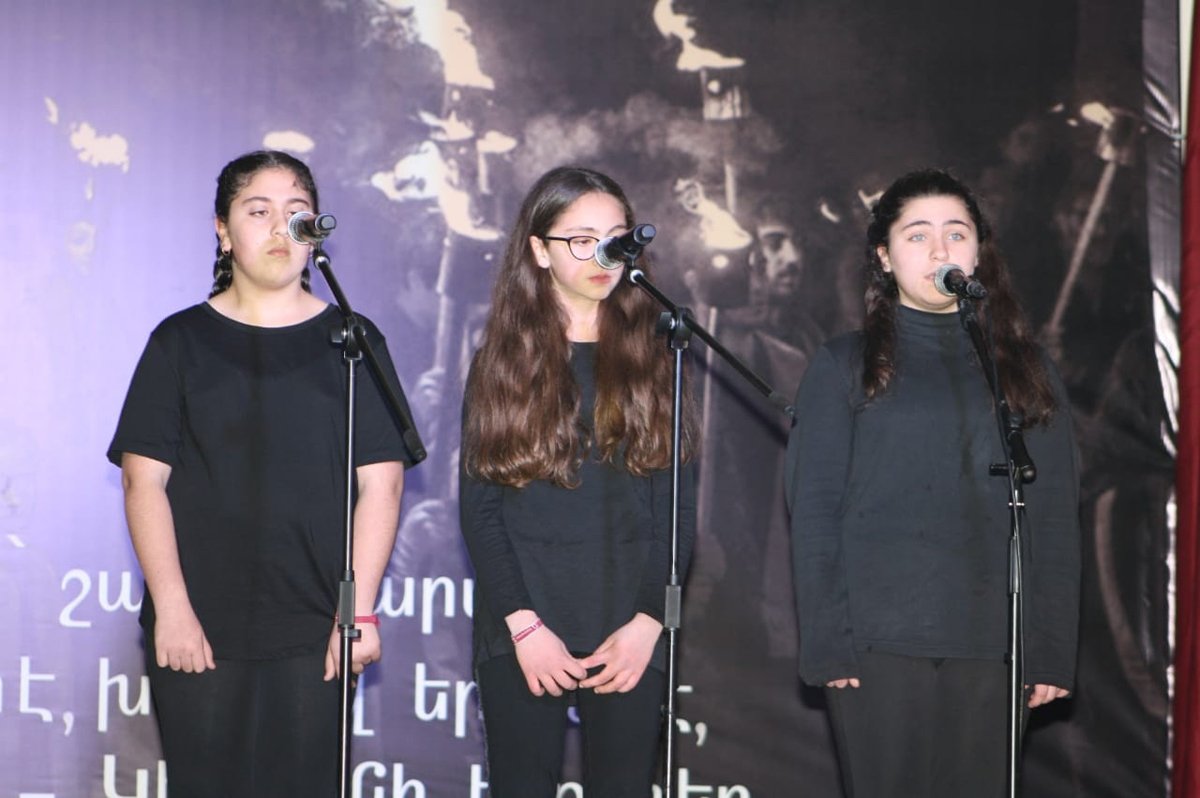 Այնուհետեւ ՀՅԴ «Յառաջ» պատանեկան միութեան պատանիներէն եռեակ մը ներկայացուց Նարէ Գէորգեանի «Զինուորի մօր երգը»` տեսերիզի ընկերակցութեամբ, որմէ ետք Ազգային Յառաջ-Գ. Կիւլպէնկեան վարժարանի աշակերտուհիները ներկայացուցին «Ապրելու ենք ապրիլ» պարը: