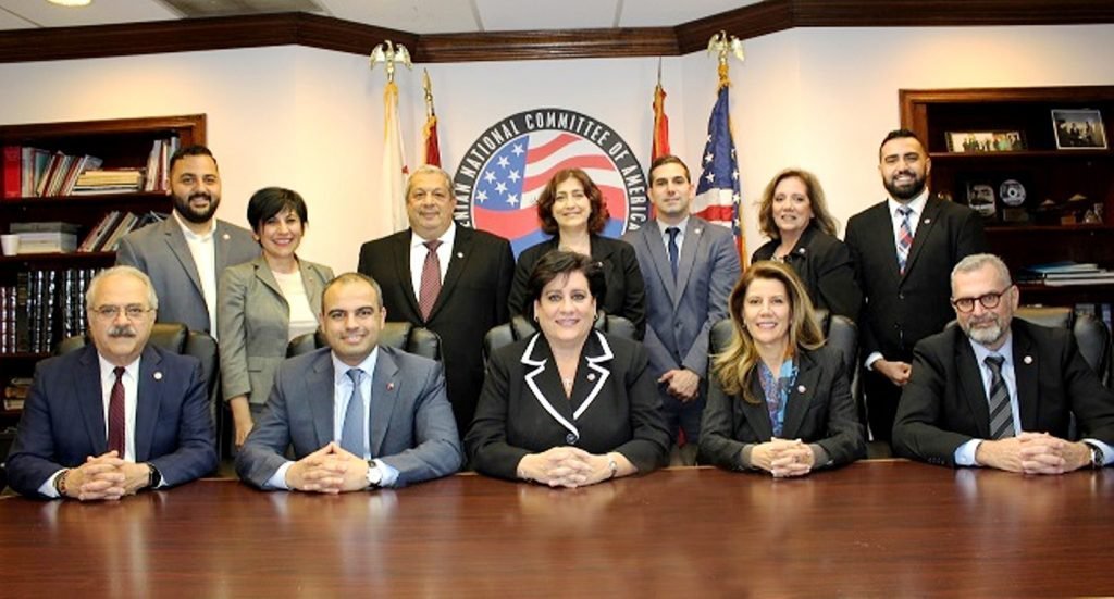 Նստած, ձախէն աջ` Ամերիկայի Հայ դատի յանձնախումբի վարչութեան անդամ` իրաւաբան Լեւոն Կիրակոսեան, իրաւաբան Րաֆֆի Գասապեան, իրաւաբան Նորա Յովսէփեան, Հերմինէ Փախանեանս եւ Սագօ Պէրպէրեան