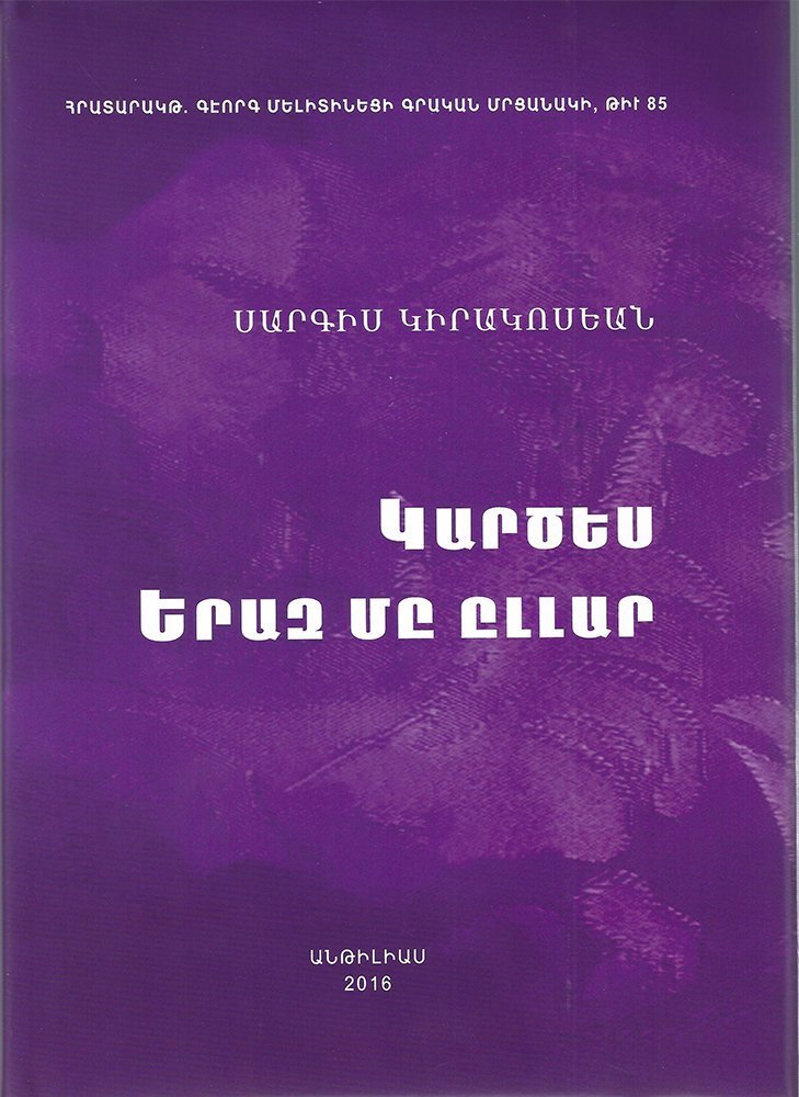 * Կիրակոսեան Սարգիս, «Կարծես երազ մը ըլլար». հրատ. Գէորգ Մելիտինեցի գրական մրցանակի, Անթիլիաս, 2016: