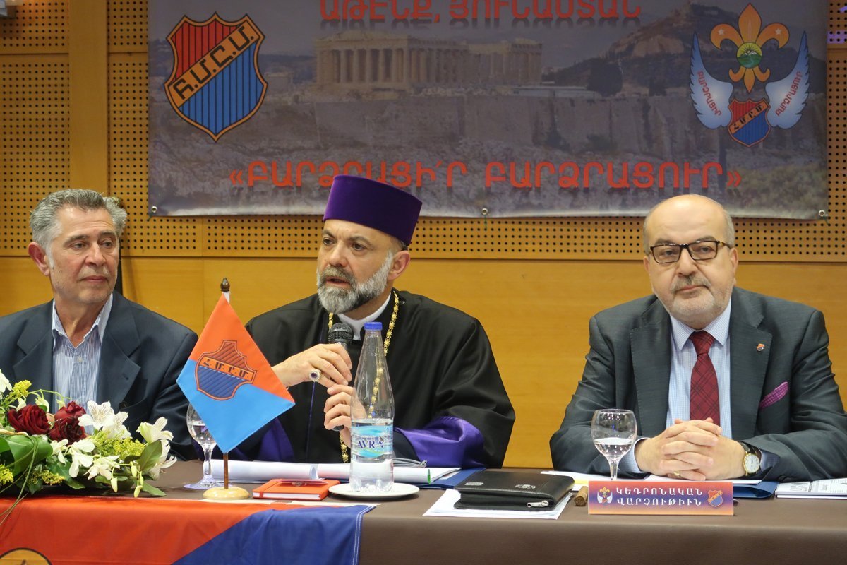 Համագումարի փակման նիստին, ՀՄԸՄ-ի Յունաստանի Շրջանային վարչութեան փոխատենապետ Հայկազ Տէօքմեքճեանի ընկերակցութեամբ, ժողովականներուն այցելեց եւ հայրական իր ողջոյնները ուղղեց Յունաստանի հայոց թեմի առաջնորդ Գեղամ արք. Խաչերեան: