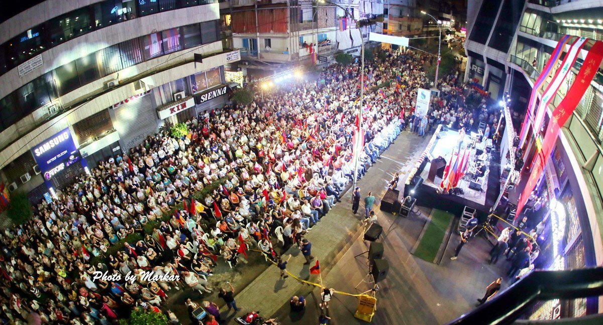 Ամբողջ պողոտան լեցուցած, Հայաստանի, Լիբանանի եւ ՀՅԴ-ի դրօշներ բարձրացուցած ժողովուրդը երգեց հայրենի ու լիբանանահայ երգիչներուն հետ, խանդավառուեցաւ անոնց խօսքերով, ապրեցաւ հայրենիքին նուիրուած երգերուն իմաստները` անգամ մը եւս հաստատելով, որ ինք արժանաւոր համակիրն է Դաշնակցութեան, հաւատարիմ է իր ազգին ու հայրենիքին: