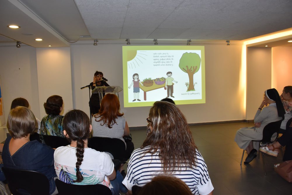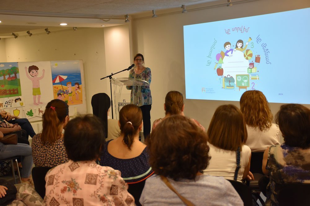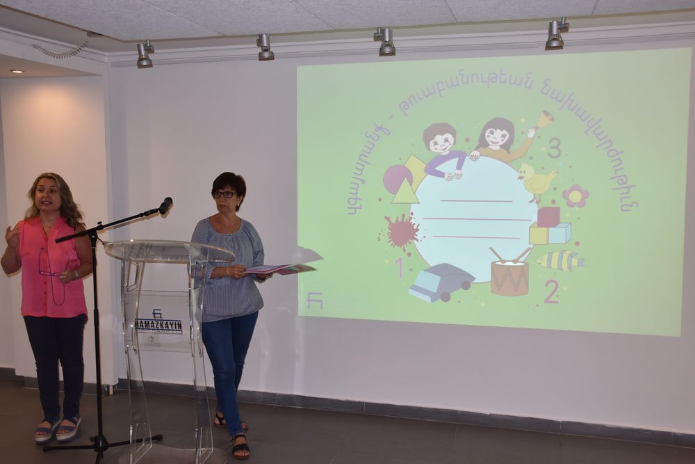 Ապա խօսք առաւ Թալին Եահնիեան: Ան ներկայացուց ուսուցիչին ուղեցոյցը, որուն հիմնական նպատակն է ուսուցիչին ներկայացնել 3-4 տարեկան երեխաներու ուսուցման վերաբերեալ ընդհանուր սկզբունքները եւ մօտեցումները, իսկ երկրորդ բաժինով` աշխատաթերթիկներու մանկավարժական նպատակակէտերը: