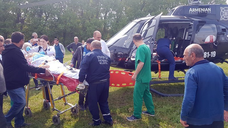 Առողջապահութեան նախարարութեան ուղղաթիռով հիւանդը տեղափոխած են Երեւան` «Էրեբունի» բժշկական կեդրոն` մասնագիտական բժշկական օգնութիւն ստանալու: