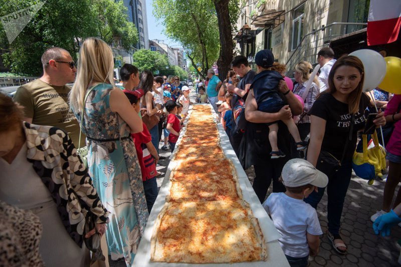 Երեւանի մէջ Մանուկներու պաշտպանութեան օրը թխեցին Հայաստանի ամէնէն երկար փիցցան, որուն երկարութիւնը 13 մեթր էր, լայնութիւնը` 65 սանթիմեթր: «Տորիա կարտա» ընկերութեան շուկայադրումի եւ վաճառքի բաժինի տնօրէն Սիրան Ապաճեանը լրագրողներու հետ զրոյցի ընթացքին ըսաւ, որ այս չափանիշը հաւանաբար կ՛ընդգրկուի «Դիւցազնագիրքին մէջ»: