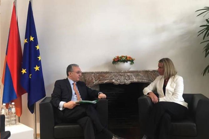 Հայաստանի Հանրապետութեան արտաքին գործոց նախարար Զոհրապ Մնացականեան Պրիւքսելի մէջ հանդիպում ունեցած է Եւրոպական Միութեան բարձր ներկայացուցիչ Ֆետերիքա Մոկերինիի հետ: «Արմէնփրես»-ի փոխանցումով` այս մասին Դիմատետրի իր էջին մէջ գրած է նախարարի մամլոյ խօսնակ Աննա Նաղտալեանը: