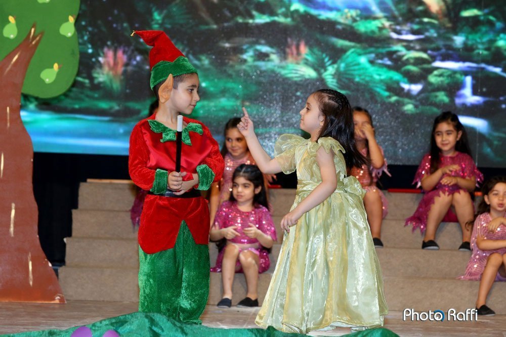 Յայտագրի երկրորդ բաժինով Ծաղիկ դասարանը սքանչելի կերպով ներկայացուց 20 վայրկեան տեւողութեամբ «Թզուկ-մզուկը» թատերախաղը, որուն նիւթը մտայղացումն է Հայաստանի Առաջին տիկին մանկավարժ Նունէ Սարգիսեանի: Թատրոնին բարոյախօսութիւնն էր. «Բարիները իրենց չարիք ընողներու բարիքով կը փոխադարձեն… իսկ բարին միշտ կը յաղթահարէ չարին»: Թատերախաղէն ետք Կոկոն դասարանը ելոյթ ունեցաւ հայկական պարով մը, որմէ ետք անոնք մեկնաբանեցին «Միլի եա ժաննաթ պիլատի» եւ Շարլ Ազնաւուրի «Փուր թուա Արմենի» երգերը: Ապա Ծաղիկ դասարանը ներկայացուց «Պելլա չաու» պարը: Բողբոջ դասարանը ելոյթ ունեցաւ «Թաքա թաքա» պարով, որմէ ետք Ծիլ դասարանը ներկայացուց «Պալքան» պարը: Այնուհետեւ Ծիլ եւ Բողբոջ դասարանները մեկնաբանեցին «Մէկ փոքրիկ աշխարհ» երգը, որմէ ետք Ծաղիկ դասարանը ներկայացուց «Պատնա նուալիի էլ ժաու»: Յայտագիրը փակուեցաւ բոլոր դասարաններուն կողմէ «Հայաստան» երգի կատարողութեամբ: