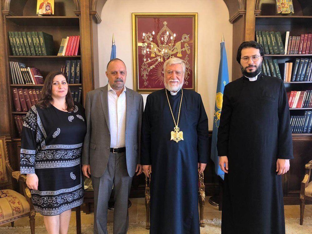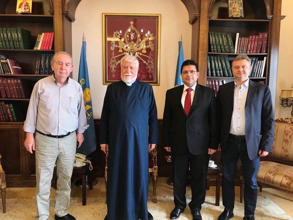 Վեհափառը ընդունեց նաեւ Արաբական Էմիրութեանց, Քաթարի եւ շրջակայից թեմի կաթողիկոսական փոխանորդ Մեսրոպ եպս. Սարգիսեանը նոյն շրջանի ազգայիններէն տէր եւ տիկին Խաչիկ եւ Սեւան Գալայճեաններուն հետ միասին, որոնք եկած էին որպէս կնքահայր ներկայ գտնուելու 16 յունիս 2019-ին Անթիլիասի մայր տաճարին մէջ տեղի ունենալիք աբեղայական ձեռնադրութեան եւ օծման:
