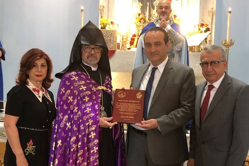 Աւարտին առաջնորդ սրբազանը յուշատախտակներ յանձնեց մեծարեալներուն: