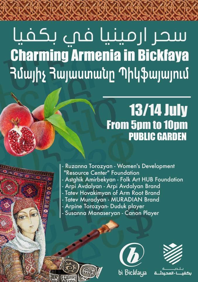 Շաբաթ, 13 եւ կիրակի 14 յուլիսին Պիքֆայայի քաղաքապետարանի հանրային պարտէզին մէջ երեկոյեան ժամը 5:00-էն 10:00-ը տեղի պիտի ունենայ «Հմայիչ Հայաստանը Պիքֆայայի մէջ» փառատօնը` կազմակերպութեամբ եւ հովանաւորութեամբ Վահէ Գալինճեանին եւ գործակցութեամբ Պիքֆայայի քաղաքապետարանին: Այս ձեռնարկին նպատակն է հայկական մշակոյթը իր բոլոր երեսներով ներկայացնել լիբանանեան եւ հայ հասարակութեան: