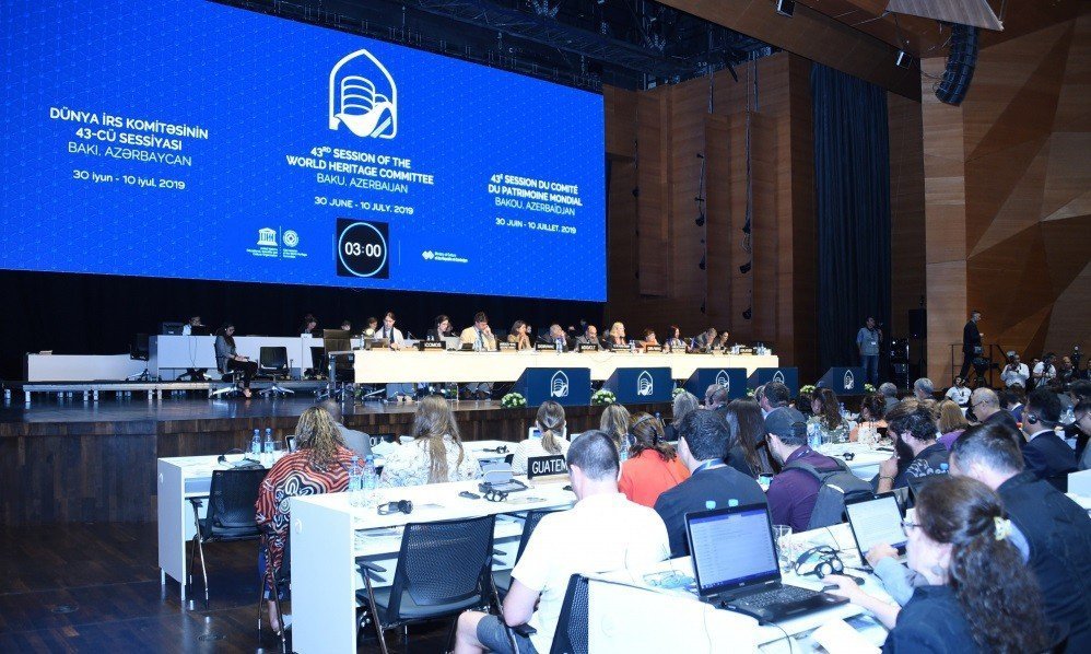 Յունիս 30-էն յուլիս 10, ԵՈՒՆԵՍՔՕ -ի համաշխարհային ժառանգութեան կոմիտէի 43-րդ նստաշրջանէն շաբաթներ առաջ իսկ, Ազրպէյճանի մայրաքաղաքը հիւրընկալած էր երկօրեայ «Միջմշակութային երկխօսութիւն» անուան տակ համաժողովը` մայիս 2-3, նիւթ ունենալով «Խտրականութեան, անհաւասարութեան եւ բռնի հակամարտութիւններու քննարկում»-ը: