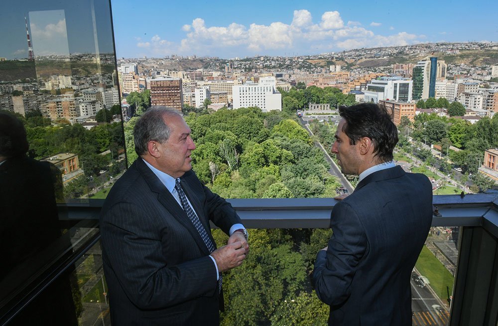 Հանդիպումի աւարտին նախագահ Արմէն Սարգսեան զրուցած է նաեւ Երեւանի ընդհանուր ճարտարապետ Արթուր Մեսչեանի հետ: