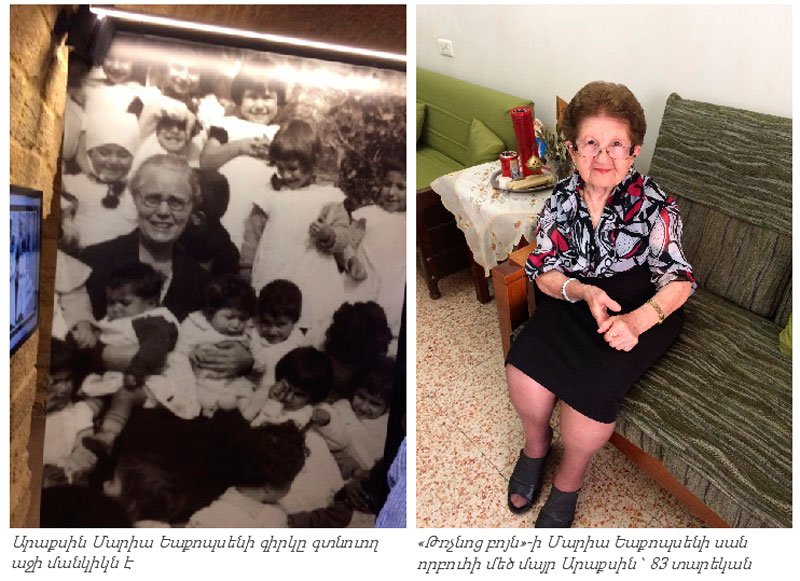 Հեռաձայնեցինք: Ժամադրուեցանք: Առաւօտեան ժամը 11:00-ին, Տորա կոչուող թաղամասի ճաշարանի մը առջեւ: Մեզ դիմաւորեց երիտասարդ կին մը, գացինք ժողովրդական թաղամասի շէնք մը: Հիւրընկալ բնակարան մը: Հոն մեզ կը սպասէր պատկերի որբուհին` անցեալի մանուկ Արաքսին, որ մեծ մայր է հիմա:
