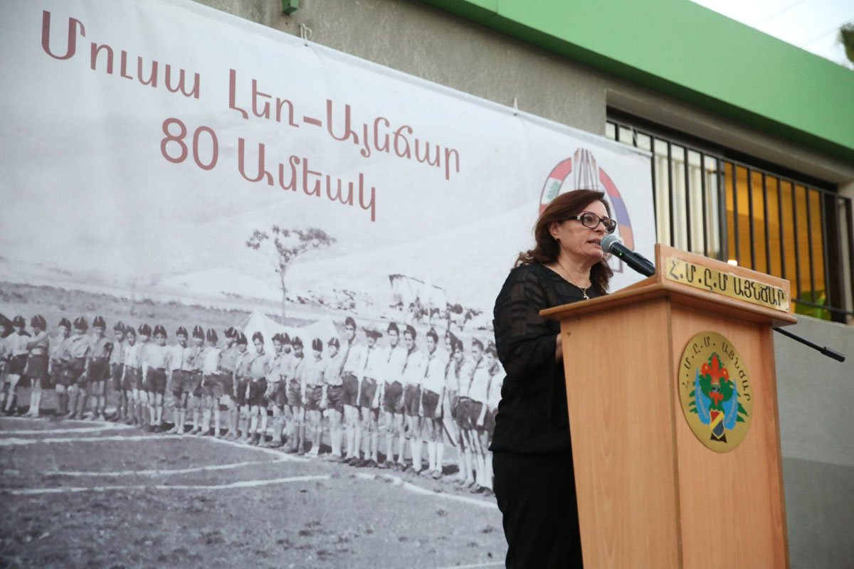 Օրուան պատգամը տուաւ Մարօ Թազեանը: Ան ներկայացնելէ ետք ՀՄԸՄ-ի Այնճարի մասնաճիւղի պատմականը` Ցեղասպանութենէն մինչեւ օրս, ըսաւ. «Այնճարի ՀՄԸՄ-ի մասնաճիւղը գիւղի երկսեռ երիտասարդութեան համար կը դառնայ հոգեկան եւ ֆիզիքական կրթութեան ազգային օճախ մը, որ իր դերակատարութիւնը կ՛ունենայ առողջ սերունդներ պատրաստելու առաքելութեան մէջ»: Ան շարունակեց. «80 տարիներ անցած են այդ օրերէն, տարիներու երազանքները դարձած են իրականութիւն, եւ ահա այսօր դէմ յանդիման կը գտնուինք նորակառոյց այս համալիրին: Կառոյց մը, որ իւրաքանչիւր ՀՄԸՄ-ականի եւ մանաւանդ Այնճարի մասնաճիւղին հպարտանքն է: 80 տարիներ ետք Այնճարի հիմնադրութենէն եւ ահա ՀՄԸՄ Այնճարը երիտասարդ է, եւ մենք բոլորս ունինք պարտաւորութիւն եւ պարտականութիւն, որպէսզի զայն պահենք միշտ երիտասարդ»: Ան իր խօսքը աւարտեց ու ըսաւ. «Այնճարի 80-ամեակի այս հաւաքը շարժառիթ մը թող ըլլայ 80 տարիներու անդարձ, բայց միշտ ապրող էջերը թերթատելու, յստակ հայեացքով դասեր քաղելու եւ հաստատ քայլերով շարունակելու դէպի նոր հորիզոններ, դէպի 100-ամեայ Այնճար` նոյն վճռակամութեամբ, նոյն հաւատքով եւ ամբողջական նուիրումով»: