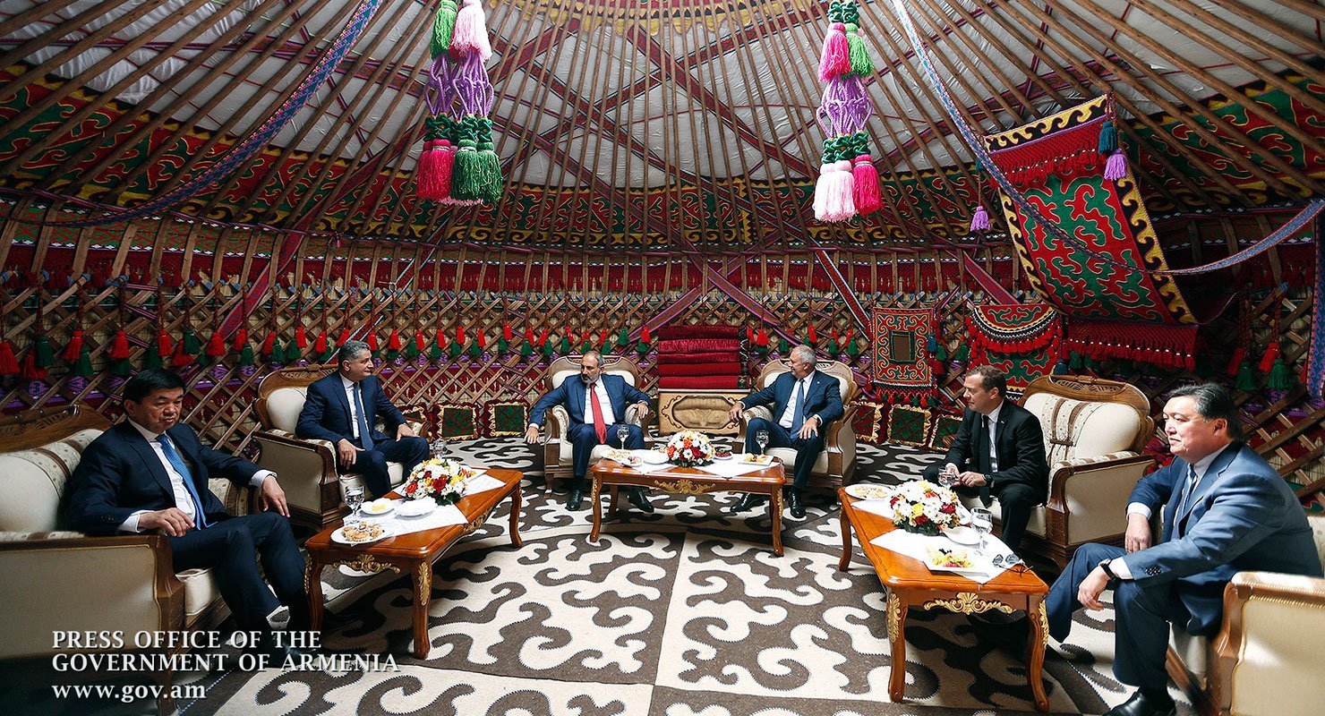 Եւրասիական միջկառավարական խորհուրդի նիստին մասնակցելու նպատակով Խըրխըզիստան գտնուող Հայաստանի վարչապետ Նիկոլ Փաշինեան 9 օգոստոսին հանդիպում ունեցաւ երկրի նախագահ Սորոնպա Ճէենպեքովի հետ: