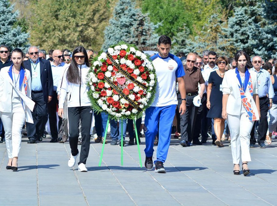 Երէկ` երեքշաբթի, 13 օգոստոսին, համահայկական 7-րդ խաղերուն մասնակցողները այցելեցին Ծիծեռնակաբերդի յուշահամալիր եւ իրենց յարգանքի տուրքը մատուցեցին Հայոց ցեղասպանութեան 1,5 միլիոն սուրբ նահատակներուն յիշատակին: