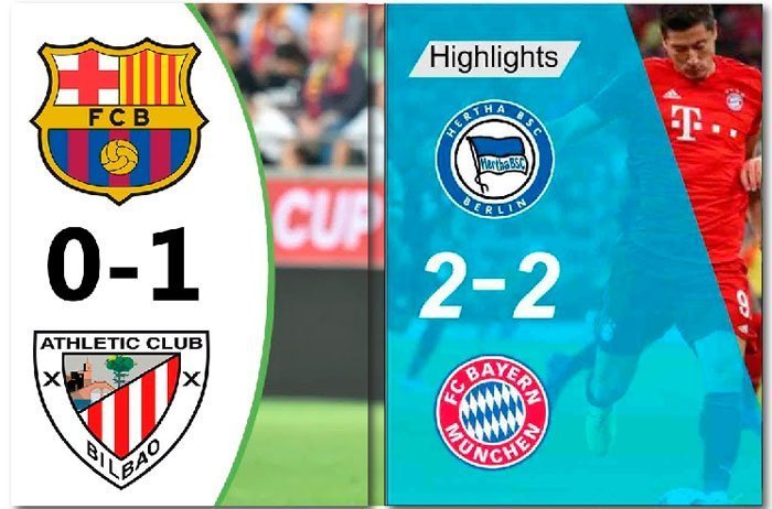 Սպանիոյ մէջ, ախոյեան Պարսելոնա երէկ հիւրը եղաւ Աթլեթիքօ Պիլպաոյին, մինչ Գերմանիոյ ախոյեան Պայէրն Միւնիխ հիւրընկալեց Հերթա Պերլինը: