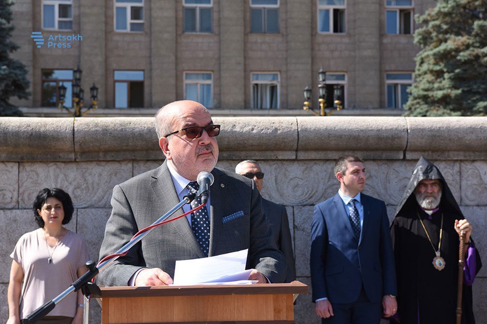 Պաշտօնական արարողութեան վերջին խօսքը արտասանեց ՀՅԴ Արցախի Կեդրոնական կոմիտէի ներկայացուցիչ Դաւիթ Իշխանեան: Ան ըսաւ, թէ մինչեւ օրս ՀՄԸՄ Արցախի մէջ ներկայ էր անպաշտօն կերպով: Ներկայ էր իր նահատակներով, որոնք իրենց գարուն կեանքերը զոհաբերեցին Արցախի հայութեան պաշտպանութեան եւ երկրի սահմաններուն ապահովութեան համար: