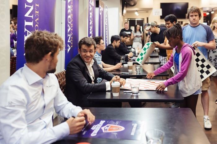 Միացեալ Նահանգներու Սենթ Լուիս քաղաքին մէջ տեղի ունեցող ճատրակի «Սինքուեֆիլտ քափ»-ի գերմրցաշարքի 9-րդ հանգրուանին ծիրին մէջ, հայկական ճատրակի յառաջատար Լեւոն Արոնեան ճերմակ քարերով մրցեցաւ աշխարհի ախոյեան, միջազգային դասաւորման մէջ առաջին դիրքը գրաւող նորվեկիացի Մակնիւս Քարլսընի դէմ: