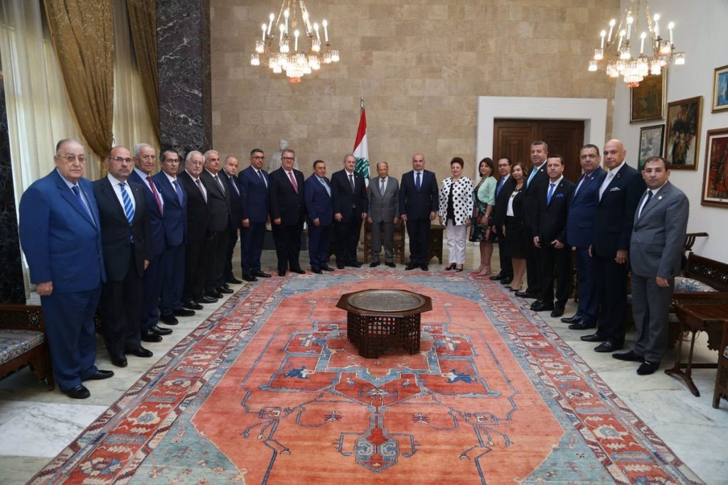 Հանրապետութեան նախագահ զօր. Միշել Աուն երէկ նախագահական պալատին մէջ ընդունեց «Լայընզ» միութեան Լիբանանի, Իրաքի եւ Պաղեստինի պատուիրակութիւնը, գլխաւորութեամբ Նապիլ Նասսուրի: