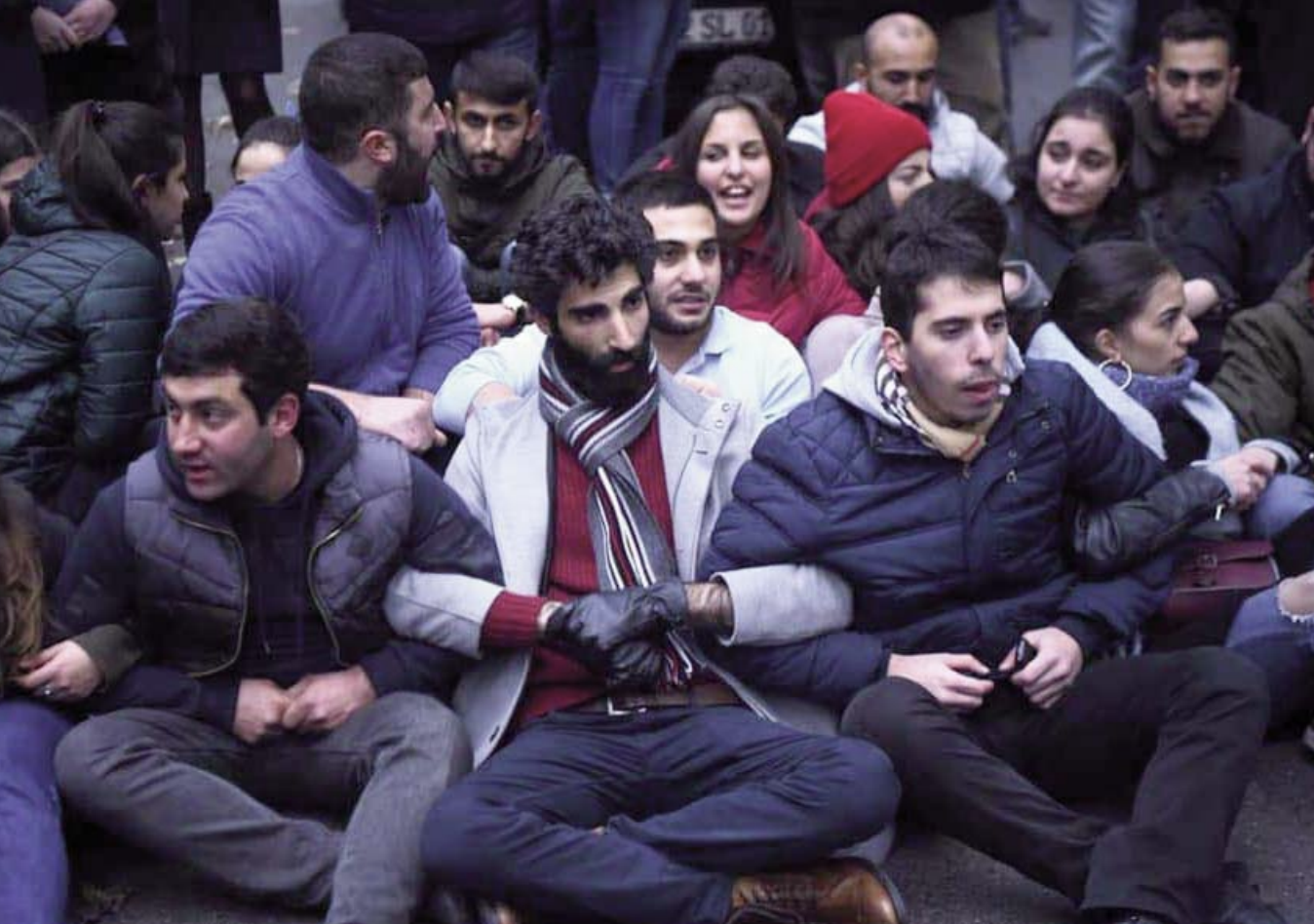 Անոնք նախարարութեան շէնքէն դուրս ելան եւ անհնազանդութեան խաղաղ գործողութիւն կատարեցին, փակեցին Վազգէն Սարգսեան փողոցը: Հոն եւս, ոստիկանները բռնի միջոցներու դիմեցին, քաշքշեցին, հրեցին ու հարուածեցին ցուցարարները եւ զանոնք բռնի կերպով ոստիկանական ինքնաշարժներուն մէջ դրին ու տարին ոստիկանութեան կեդրոն: