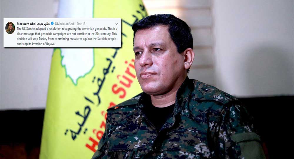 Քրտական ղեկավարութեամբ Սուրիոյ ժողովրդավարական ուժերու հրամանատար Մազլում Ապտ յայտարարած է, որ Միացեալ Նահանգներու Ծերակոյտին կողմէ Հայոց ցեղասպանութիւնը ճանչցող բանաձեւի որդեգրումը կ՛արտօնէ կանխարգիլել Թուրքիոյ կողմէ Սուրիոյ հիւսիս-արեւելքին մէջ քիւրտերուն դէմ իրականացուելիք կոտորածները: Այս մասին կը հաղորդէ քրտական «Ռուտաու» կայքը: