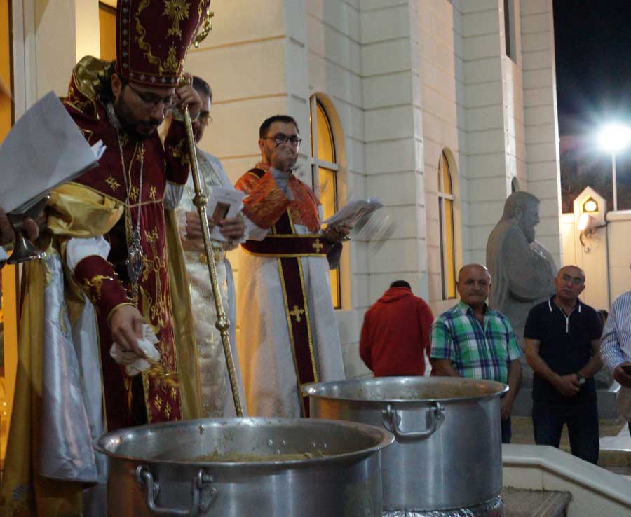 Ապա Ազգային Արա Խանոյեան միօրեայ վարժարանի մուտքին եկեղեցւոյ հինգերորդ տարեդարձի անուանակոչութեան առիթով տեղի ունեցաւ աւանդական մատաղի օրհնութիւնը: