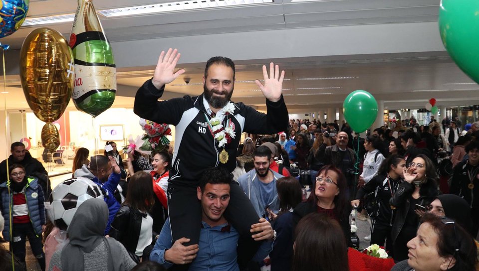 Պէյրութ իրենց վերադարձին, Լիբանանի ախոյեան աղջիկները արժանացան շատ ջերմ ընդունելութեան` Լիբանանի ֆութպոլի ֆետերասիոնի նախագահ Հաշեմ Հայտարի եւ ֆետերասիոնի այլ անդամներուն կողմէ: