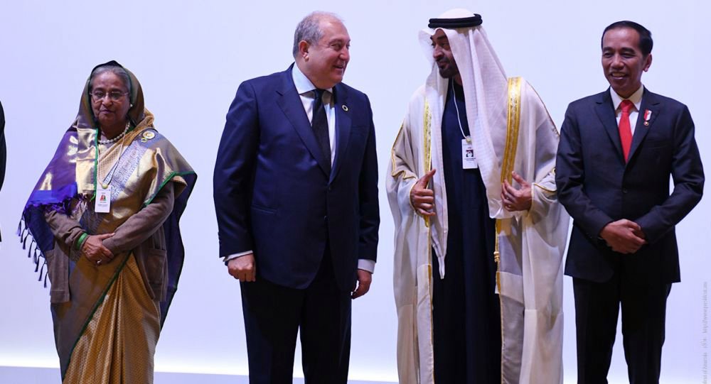 Աշխատանքային այցելութեամբ Արաբական Միացեալ Էմիրութիւններ գտնուող` Հայաստանի Հանրապետութեան նախագահ Արմէն Սարգսեան մայրաքաղաք Ապու Տապիի մէջ մասնակցած է «Ապու Տապիի կայունութեան շաբաթ» միջազգային հեղինակաւոր ֆորումի բացման հանդիսաւոր արարողութեան, որուն ներկայ եղած են Ապու Տապիի թագաժառանգ, Էմիրութիւններու զինուած ուժերու ընդհանուր հրամանատարի տեղակալ շէյխ Մոհամետ պըն Զայետ ալ Նահեան, Ինտոնեզիոյ նախագահ Ճոկօ Վիտոտօ, Ռուանտայի նախագահ Փոլ Քակամէ, Սերպիոյ վարչապետ Աննա Պրնապիչ, այլ պետութիւններու եւ կառավարութիւններու ղեկավարներ, դիւանագէտներ, քաղաքական ու հասարակական գործիչներ, ձեռնարկատէրեր, շուրջ 4000 պատուիրակներ աւելի քան 175 երկիրներէ: