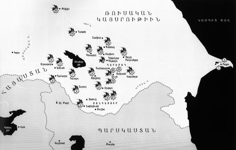 Հայ-թաթարական բախումները, որոնք կայծ առած էին Պաքուէն, շուտով պիտի տարածուէին Անդրկովկասի հայաբնակ գրեթէ բոլոր շրջանները` Նախիջեւան, Արարատեան դաշտ, Զանգեզուր, Գանձակ (Ելիզաւետպոլ) (7), Թիֆլիս, Շարուր-Դարլագեազ եւ Արցախ (մասնաւորապէս Շուշի):