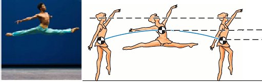 Երբ թեւերը վեր բարձրանան, ծանրութեան կեդրոնը կը բարձրանայ: Ենթադրելով թէ քովի պատկերի մէջ տեսնուող տղու հասակը 184 սմ է, ծանրութեան կեդրոնը բարձրացած կ’ըլլայ 11,5 սմ: Ծանրութիւնը վեր բարձրացնելու համար հարկ է որ գետինը «վեր հրէ» պարողը: Երբ վեր ցատկած միջոցին պարողը միաժամանակ վեր բարձրացնէ իր թեւերը, յատակի յաւելեալ մղումը կը բարդուի իր սրունգներու մղումին, եւ կը ցատկէ աւելի բարձր: Եթէ ցատկելէ ետք , օդին մէջ եղած միջոցին վար առնէ թեւերը, կը «շահի» տարբերութիւնը եւ «կարճցած» մարմինը կը թուի աւելի վեր բարձրացած ըլլալ: Այսպիսով, օրինակ, սրունքներու նոյն ճիգով փոխանակ 50 սմ վեր ցատկելու, կրնայ 60-70 սմ ցատկել: Այդ կախեալ է ուսի մկաններու զօրութենէն: Ի դէպ յատակները տախտակամած կ’ըլլան որովհետեւ փայտէ լաստերը առաձգական են: Իսկ կը պատուին յատուկ ձգախեժով (rosin) որպէսզի ճիգ գործադրող պարողները չսահին(8): Բայց արդէն իսկ սահող ոտքերը շփումի նուազ դիմադրութեան կը զգան (9):