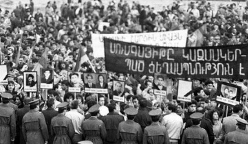 Միւս կողմէ, Արցախի ազատագրական պայքարին լծուած հայութիւնը երբ իր ազատատենչի բողոքը լսելի դարձուց եւ իր կամքը պարտադրեց, բարբարոս ազերի հորդաներ սկսան իրենց ցեղասպանական արարքներուն, երբեմնի Խորհրդային բանակին թէ արեւմտեան երկիրներու կուրացած աչքերուն եւ խլացած ականջներու առջեւ: