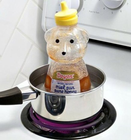 Որպէսզի քարացած մեղրը ինքզինք վերագտնէ, շիշով միասին զայն քանի մը վայրկեան եռացուցէք ջուրով լեցուն փոքրիկ կաթսայի մը մէջ: