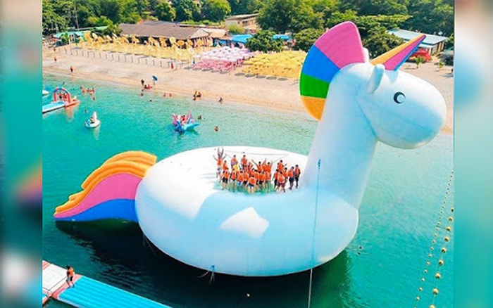 Այս կախարդական վայրը ունի նաեւ գեղեցիկ ծովափ մը, ուր նստարաններու, արեւոցներուն գոյնը, առարկաները, տեսարանները կը յիշեցնեն միաեղջիւր ձիերու աշխարհը: