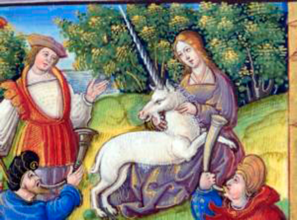 Միջին դարերուն միաեղջիւր ձին լաւ անուն ունի: Ըստ աւանդութեան, անոր նշանաւոր եղջիւրը ջուրը կը մաքրէ, եւ փոշիի վերածուած` ան թոյնէն կը պահպանէ: Սակայն նախընտրելի է միշտ ուշադիր ըլլալ. միաեղջիւր ձին կրնայ զինք զայրացնող անձերուն մարմինները կայծակով մը խոցել: Անոր մօտենալու համար նախընտրելի է երիտասարդ աղջիկէ մը խնդրել անոր հետ խօսիլ. այդ ժամանակ միաեղջիւր ձին կ՛արտօնէ, որ երիտասարդուհին զինք շոյէ, եւ ան հանդարտ եւ քնքուշ կը դառնայ: