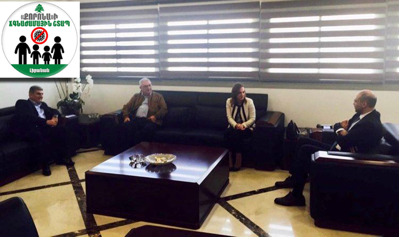 «Քորոնա»-ի ճգնաժամային շտապի պատուիրակութիւնը, ընկերակցութեամբ երիտասարդութեան հարցերու եւ մարմնակրթութեան նախարար Վարդինէ Օհանեան-Գէորգեանի, այցելեց առողջապահութեան նախարար Համատ Հասանի: Շտապը նախարարին ներկայացուց իր գործունէութեան ծրագիրը եւ աշխատանքային ոլորտները, յատկապէս Պուրճ Համուտի, Այնճարի եւ Պէյրութի մէջ բարեսիրական միութիւններու եւ կեդրոններու դիմագրաւած դժուարութիւնները: