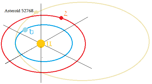 Արտաքսուածներ.- Նոյն այդ գործընթացն է, որ տակաւին կը շարունակէ երկնաքարեր վտարել գօտիէն: Անոնցմէ ոմանք կը մտնեն նոր ծիրի մը մէջ, որ կը հատէ (intersect) երկրի ծիրը: Ինչպէ՞ս կարելի է, որ երկու անձեր անցնին նոյն վայրէն, բայց չհանդիպին իրարու: Պատասխանը պարզ է, կ’անցնին տարբեր ժամանակներու մէջ: Նոյնն է պարագան Երկրագունդի, Asteroid 52678-ի եւ մնացեալ այն երկնաքարերուն, որոնց ծիրը կը հատէ մերը: Գծապատկերին մէջ կը տեսնենք Երկրի (Ե), Հրատի (Հ) եւ երկնաքարի ծիրերը Արեւուն (Ա) շուրջ: