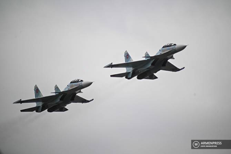 «ՍՈւ-30» գերժամանակակից ինքնաթիռներու թռիչքը սկսաւ Գիւմրիէն, անոնք հասան Երեւան` «Մայր Հայաստան» յուշահամալիրին մօտ` ցուցադրելու օդային հնարքներ: