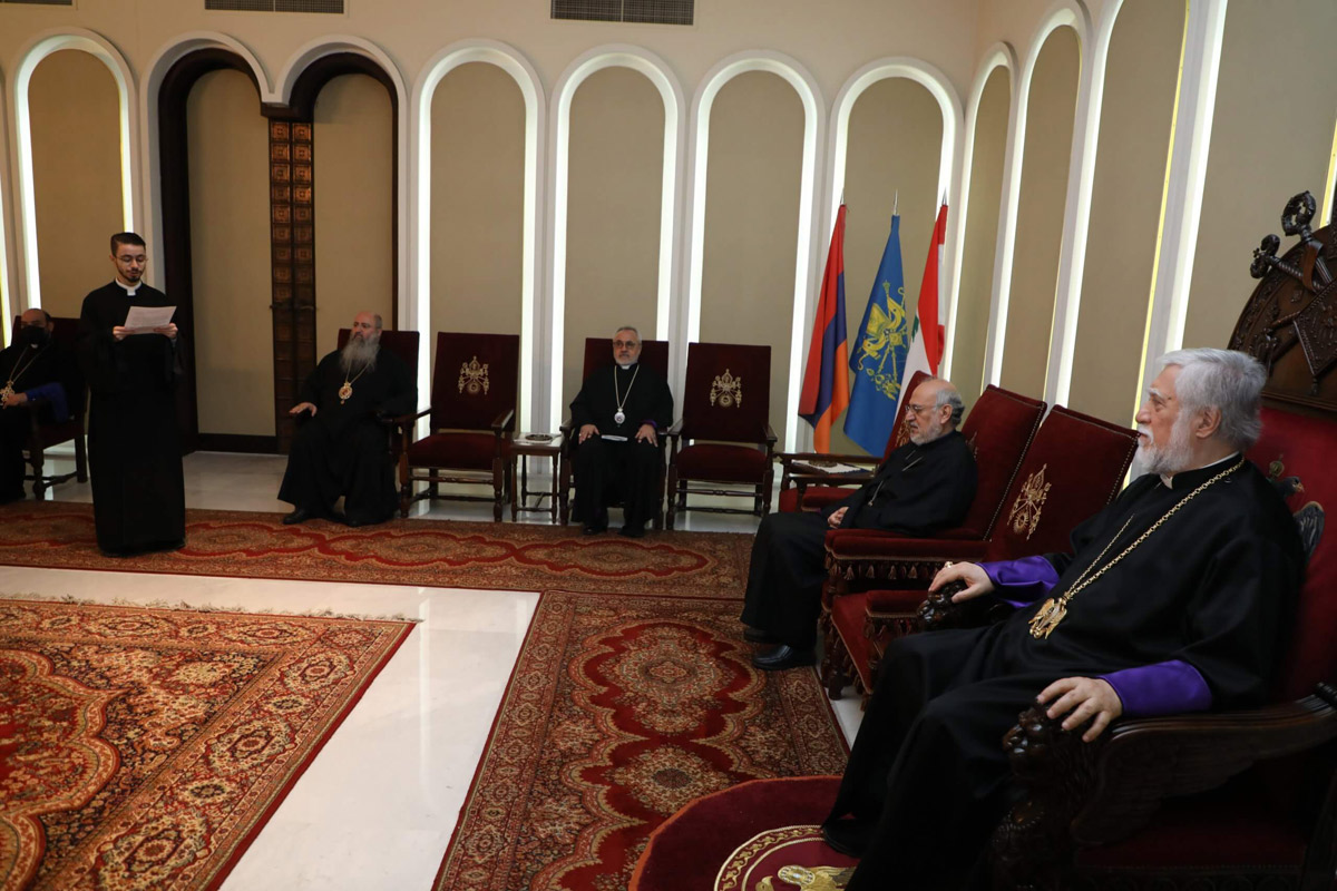 Արդարեւ, հինգշաբթի, 28 մայիս 2020-ին, միաբան հայրեր շնորհաւորեցին վեհափառ հայրապետը եւ իր հայրական օրհնութիւնը ստացան: Միաբանութեան զգացումներուն, մաղթանքներուն ու մտածումներուն թարգմանը հանդիսացաւ երիտասարդ միաբան հայրերէն Աւետիք աբղյ. Տէր Կարապետեան: Իր ուղերձին մէջ հայր սուրբը ըսաւ, որ վեհափառ հայրապետը սարդարապատեան շունչով անցնող 25 տարիներուն նոր ոգի ու տեսլական տուաւ Մեծի Տանն Կիլիկիոյ կաթողիկոսութեան համազգային առաքելութեան:
