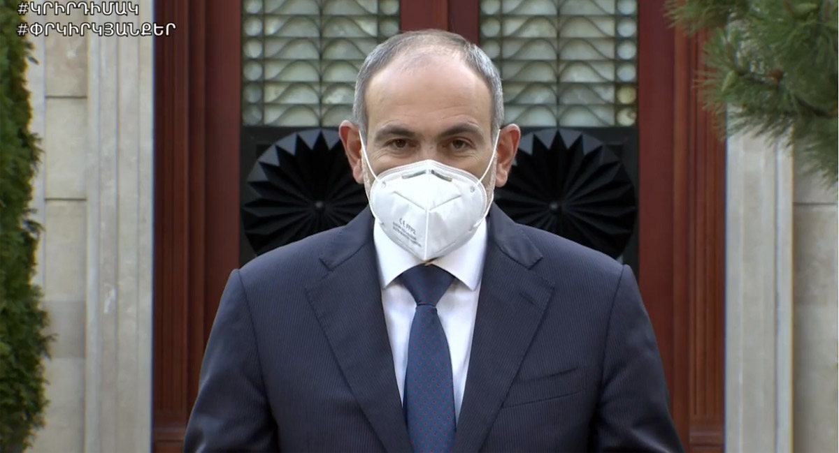 «Երէկ պարզուած է, որ «Քորոնա» ժահրի քննութիւնը դրական է, կ’ուզեմ ըսել, որ որեւէ ախտանշան չեմ ունեցած: Առաջնագիծ մեկնելու ծրագիր կար, որոշեցի քննութեան ենթարկուիլ, եւ անիկա դրական էր, որմէ ետք քննուեցաւ նաեւ ամբողջ ընտանիքս` բոլորս վարակուած ենք «Քորոնա» ժահրով: Մենք չունինք որեւէ ախտանշան, վերջին մէկ ամսուան ընթացքին ամէն օր աշխատանքի ներկայանալու ժամանակ, ինչպէս կարգն է, ջերմաչափուած եմ եւ չեմ ունեցած ջերմութիւն», կը նշէ վարչապետ Փաշինեան: