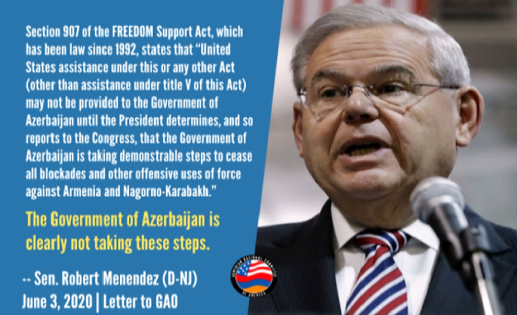 Մենենտեզ կը շեշտէ, թէ ռազմական նման մեծածաւալ յատկացումներ կրնան խախտումներ ըլլալ Ազրպէյճանին ռազմական աջակցութեան տրամադրումը սահմանափակած եւ 1992-ին վաւերացուած թիւ 907 յաւելուածին, որ պատժամիջոց մըն է` Հայաստանի եւ Արցախի դէմ Պաքուի բռնարարքներուն պատճառով: