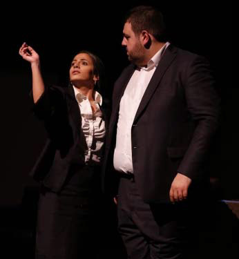 Խաղարկութիւն .- «Մատինա» թատրոնի ելոյթի սկզբնաւորութեան բեմադրիչը անձամբ դուրս եկաւ եւ բեմ տախտակամածին տուաւ գաւազանի դասական հարուածները: Ուրեմն մենք պիտի դիտէինք թատերական խաղ մը: Այդ իսկապէս գործադրուեցաւ ելոյթի ընթացքին: Դերակատարները յաճախ մնջախաղով կը դիմէին հանդիսատեսին, ցոյց կու տային, թէ կը խաղային հանդիսատեսի՛ համար, գոյութիւն չունէր «չորրորդ պատ»: