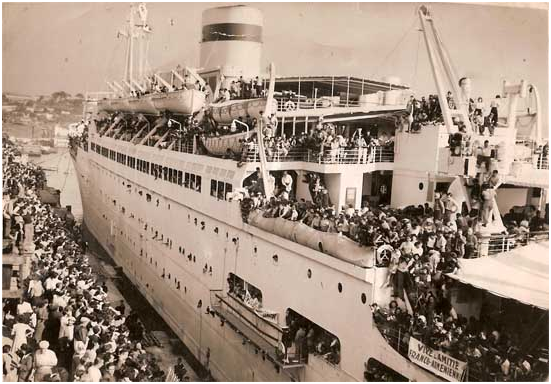 Երկու կամ երեք օր ետք ան արդէն լեցուած էր բեռներով ու խուռներամ հայրենադարձներով, երբ կամրջակը քաշեցին ու նաւը շարժեցաւ՝ մեկնողներու եւ մնացողներու ճիչերուն տակ, որոնք շուտով վերածուեցան սրտերէ բխած համերգի մը, որ առաջին անգամ կը լսէինք եւ հետագային աւելի յաճախ պիտի լսուէր.