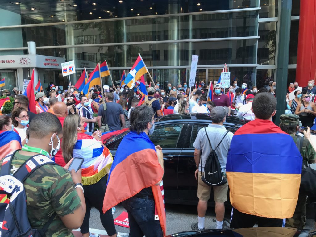 Արդարեւ, Նիւ Եորքի մէջ ուրբաթ, 24 յուլիսին ազրպէյճանցի եւ թուրք ցուցարարներ անակնկալ հաւաք մը կազմակերպած էին ՄԱԿ-ի մէջ Հայաստանի դեսպանատան մուտքին: Անոնց դէմ յանդիման եկաւ նիւեորքահայութիւնը՝ պաշտպանելով կառոյցը եւ ետ մղելով խուժան ցուցարարները: Ոստիկանութիւնն ալ վրայ հասնելով, կրցաւ տէր դառնալ կացութեան: