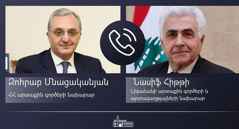 27 յուլիսին Հայաստանի արտաքին գործոց նախարար Զոհրապ Մնացականեան հեռաձայնային հաղորդակցութիւն ունեցաւ Լիբանանի արտաքին գործոց եւ արտերկրի լիբանանցիներու հարցերու նախարար Նասիֆ Հըթթիի հետ: