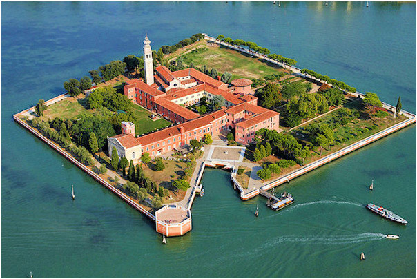 Ուրեմն ս. Ղազարի մեր էջքին՝ դիմաւորելով մեզ, ան առաջնորդեց դէպի գլխաւոր շէնքը: Մինչ այդ յայտնեց, որ կղզին ներկայիս չորս անգամ աւելի ընդարձակ է, քան 1717-ին, երբ Մխիթար աբբահայրը ստանձնած էր զայն:
