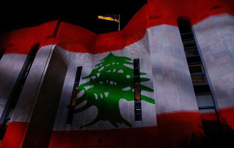Լիբանանի դրօշին գոյներով լուսաւորուած է նաեւ Երեւանի քաղաքապետարանի շէնքը: