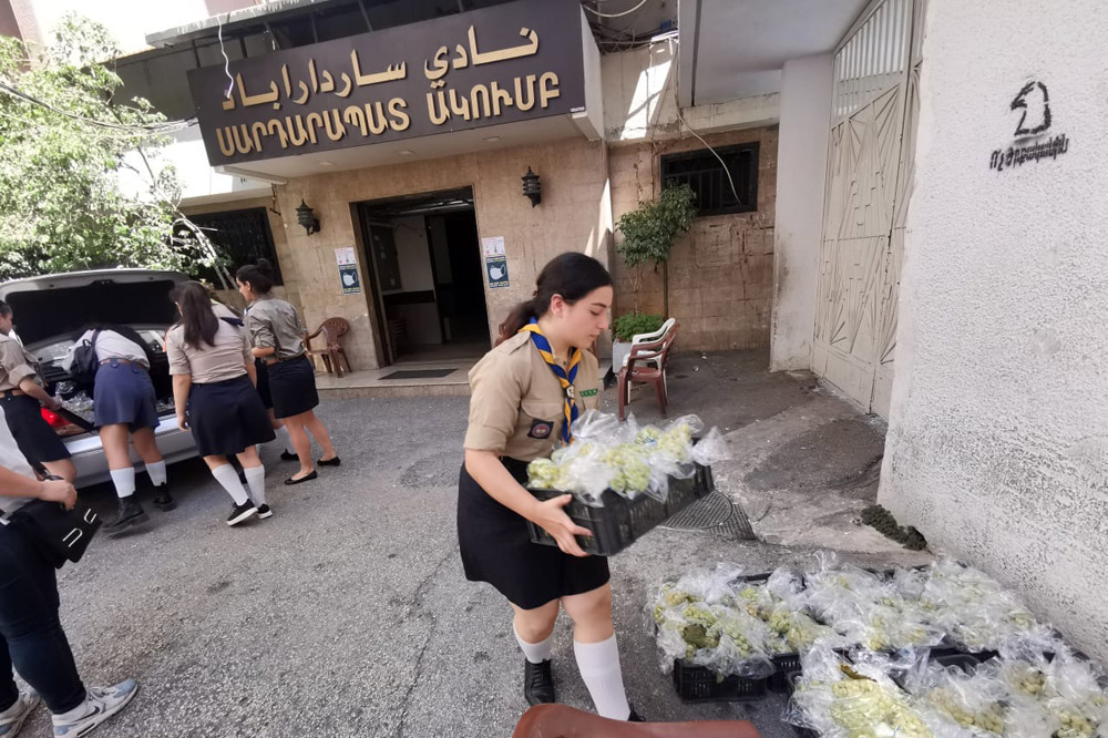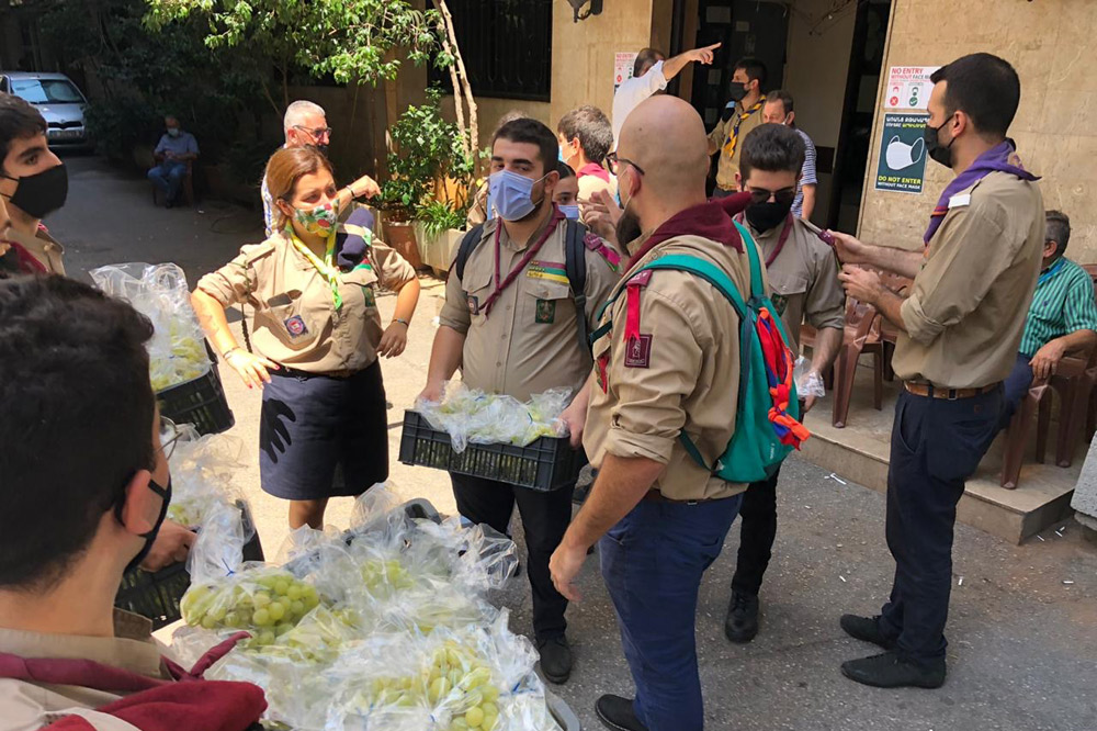 Վիրաւոր հոգիները ամոքելու… Վերականգնելու ու գոյատեւելու լոյս մը սփռելու նպատակով` կիրակի, 16 օգոստոս 2020-ին, Ս. Աստուածածնայ Վերափոխման տօնին առիթով, խմբապետներ, երէցներ ու պարմանուհիներ յոյս, կամք ու կորով ներշնչելու համար նաւահանգիստի պայթումի աղէտէն վնասուած շրջաններու բնակիչներուն, օրհնուած խաղողի ողկոյզներ բաժնեցին Պուրճ Համուտի, Մար Մխայէլի, Էշրեֆիէի եւ Զոքաք էլ Պլաթի շրջաններու բնակիչներուն: